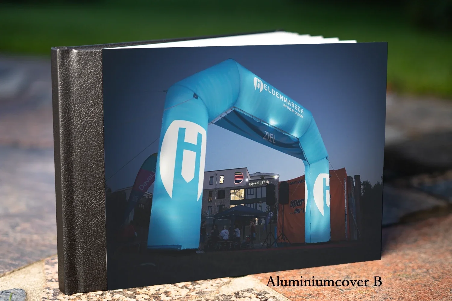 Premium Aluminiumcover mit Kunstledereinband (30x21cm).